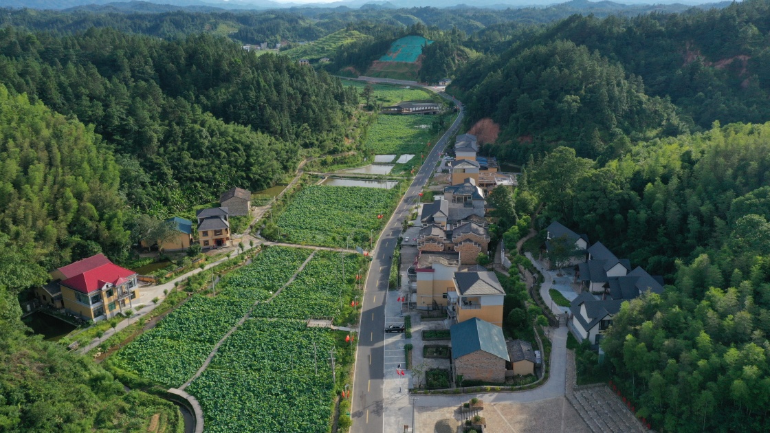 江西省井岡山市人武部通過開展紅色旅游幫助龍市鎮大倉村走上了致富路。這是大倉村景色(2020年6月28日攝,無人機照片)。新華社發(郭冬明 攝)