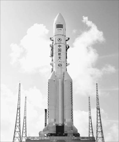 整裝待發(fā)的長征五號運載火箭。孫 浩攝