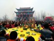 上午9時,曹縣桃源集村以街為單位,每街集合祭奠隊伍,由幾十位青壯年抬著精心捏制、塑造的花供供品,列隊前往火神廟彩棚。