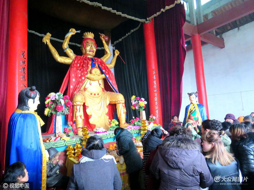 正月初七,是菏澤民俗“火神節”,也是菏澤曹縣桃源集鎮鄉民們舉行一年一度花供火神廟會的日子。雖前日夜降下小雪,但周邊群眾并沒減少對趕廟會、看花供的熱情,數萬村民、游客前往村東火神廟,祭奠火神、觀賞花供。