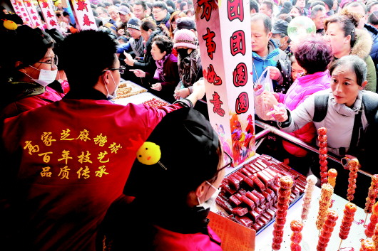 在節會現場,一溜的糖球攤位,最火的依舊是百年老字號高家糖球,“我這排了好長時間的隊才買上,可把我擠壞了。”舉著手里的糖球,從西海岸趕過來的“吃貨”高女士樂道,她到會場一個小時,已經吃遍了臭豆腐、印度飛餅、長沙大烤腸等各色小吃,高家糖球則是壓軸的,“這家的糖球確實好吃。”