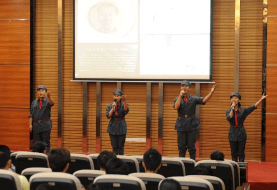 當(dāng)日,廣西百色起義紀(jì)念館的工作人員來(lái)到百色學(xué)院,給大學(xué)生們上了一堂名為《百色風(fēng)雷》的愛國(guó)主義教育課。《百色風(fēng)雷》以講故事、朗誦、山歌演唱及舞蹈表演等形式歌頌了老一輩無(wú)產(chǎn)階級(jí)革命家領(lǐng)導(dǎo)百色起義、創(chuàng)立右江革命根據(jù)地所取得的豐功偉績(jī)。