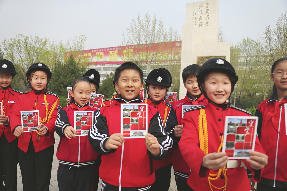 日前,濟南市暨槐蔭區青少年紀念四五烈士英勇就義84周年活動在槐蔭廣場舉行。300余名團市委機關干部、槐蔭區團員青年和中小學生參加活動。活動現場,上百名來自槐蔭區的學生代表共同聆聽了小小宣講員講述的“四五”烈士的故事,同時還得到了一份特殊的紀念品——由中共槐蔭區委宣傳部等部門聯合編輯印制的《守望——槐蔭區市級愛國主義教育基地巡禮》。