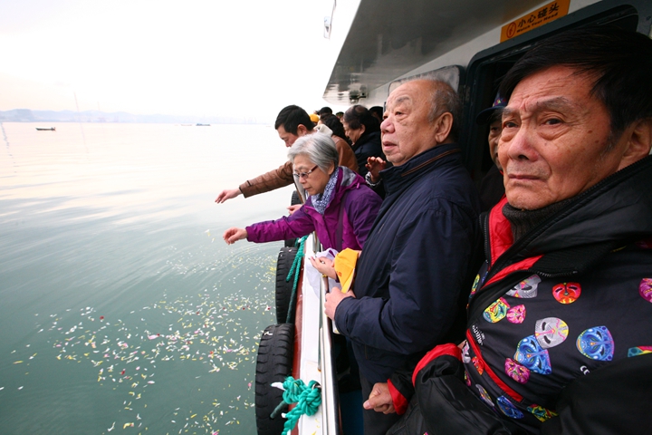 福建船政創辦人左宗棠后人左煥宗、福建船政大臣沈葆楨六代孫女沈園、北洋海軍提督丁汝昌后裔丁昌明、民族英雄林則徐六世孫女林祝光等參加了當日的祭奠活動。他們乘船來到北洋海軍將士奮勇抗敵的日島炮臺,把手中的鮮花灑向大海,向英烈們表達哀思。