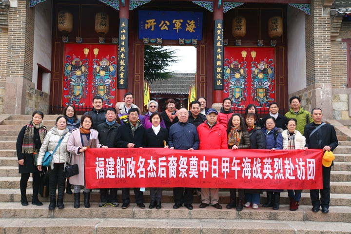近日,福建船政名杰后裔代表與北洋海軍將士后裔代表40余人來到威海劉公島甲午海戰紀念地,祭奠甲午英烈。