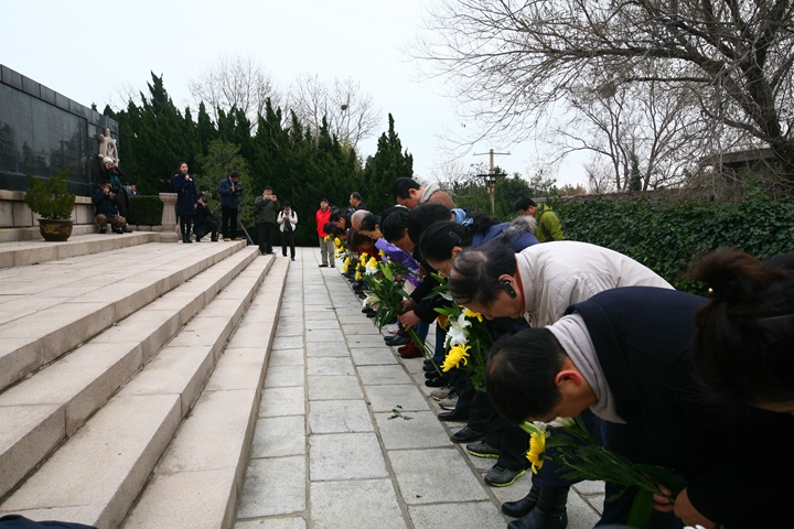 在丁汝昌書房前,丁汝昌第五代玄外孫趙懷民手捧菊花,行三叩首禮。趙懷民稱,作為北洋海軍提督丁汝昌的后代,他感覺很光榮,他沒有忘記先祖的精神,并有責任將這種精神傳遞給后代。