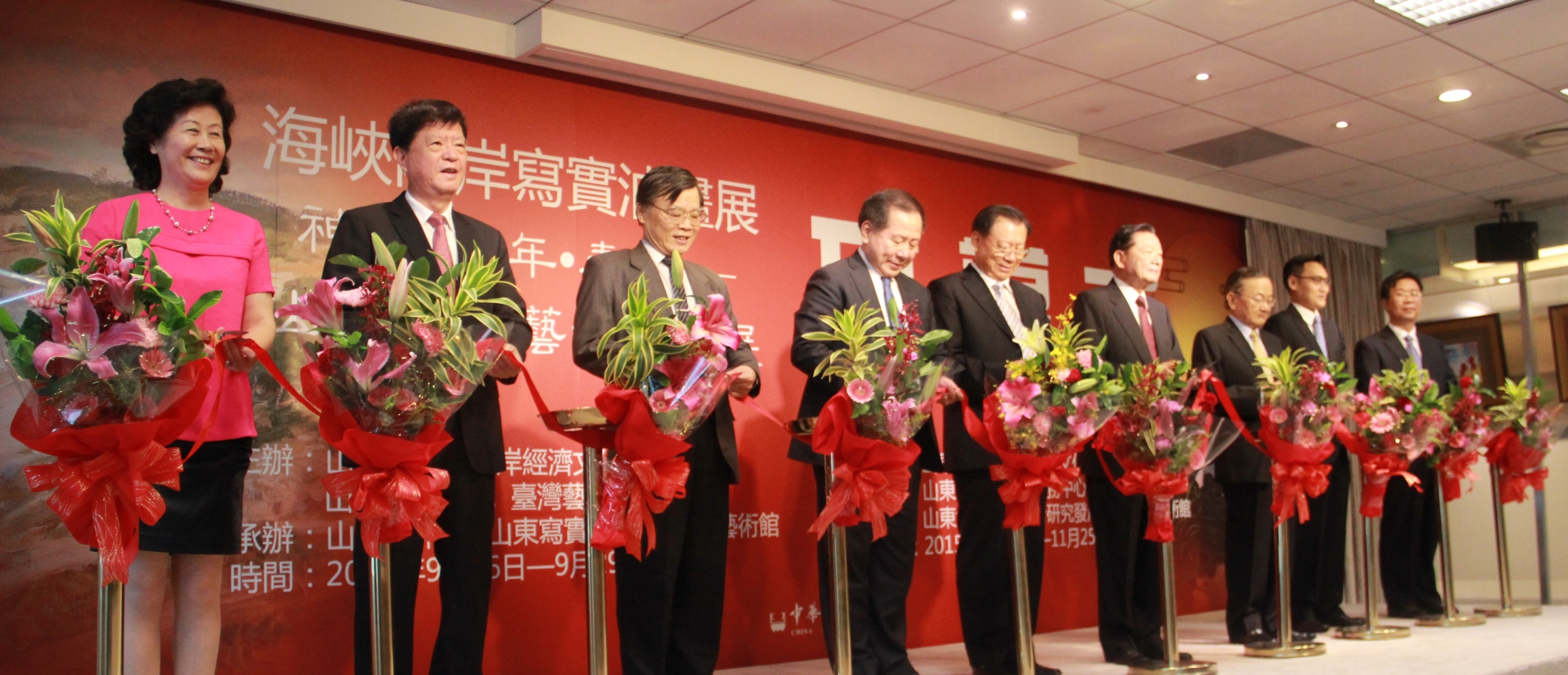 山東省人大常委會(huì)副主任柏繼民,省人大常委會(huì)秘書(shū)長(zhǎng)翟魯寧,省人大常委會(huì)法制委員會(huì)主任委員彭緒進(jìn),省臺(tái)辦主任張雪燕,省委宣傳部副部長(zhǎng)王紅勇,省臺(tái)辦副主任張民忠,省人大常委會(huì)辦公廳副主任劉治敏,省財(cái)政廳副巡視員陳祥志,省文化廳副廳長(zhǎng)胡上山,以及棗莊、東營(yíng)、濟(jì)寧、日照、臨沂、菏澤等地的人大常委會(huì)副主任一行出席了開(kāi)幕式。臺(tái)灣海基會(huì)原董事長(zhǎng)、三三會(huì)會(huì)長(zhǎng)、經(jīng)濟(jì)研究院董事長(zhǎng)江丙坤,國(guó)民黨原副主席詹春柏先生及夫人,國(guó)民黨中常委江碩平,國(guó)民黨中評(píng)會(huì)主席李傳洪,中華大成至圣先師孔子協(xié)會(huì)會(huì)長(zhǎng)孔垂長(zhǎng),臺(tái)灣著名水墨藝術(shù)家李奇茂,臺(tái)灣藝術(shù)大學(xué)美術(shù)學(xué)院院長(zhǎng)林進(jìn)忠等臺(tái)灣嘉賓出席了開(kāi)幕式。社會(huì)各界民眾、媒體記者、藝術(shù)愛(ài)好者共計(jì)百余人參加了開(kāi)幕式。柏繼民副主任和江丙坤先生等嘉賓分別致辭。開(kāi)幕式由省委臺(tái)灣事務(wù)辦公室主任張雪燕主持。